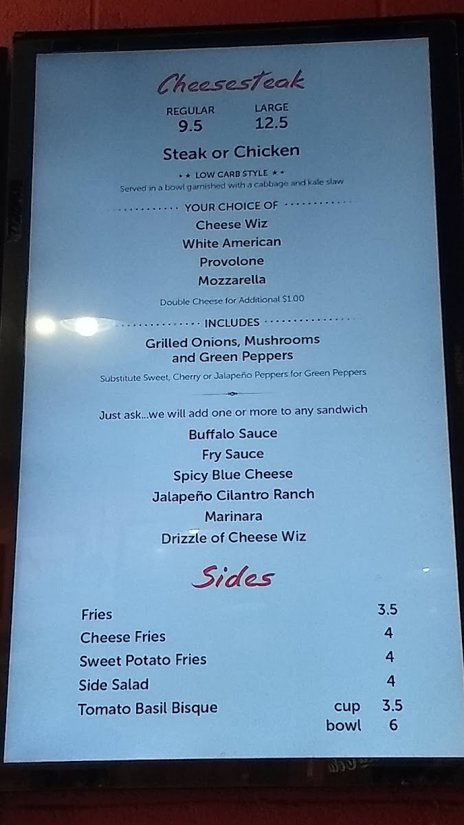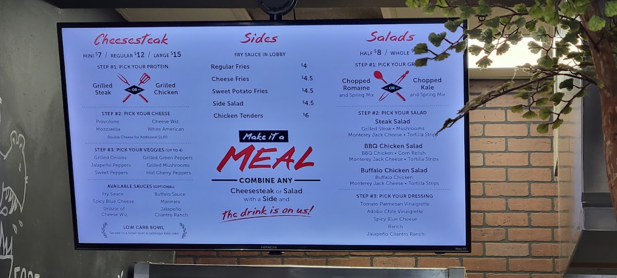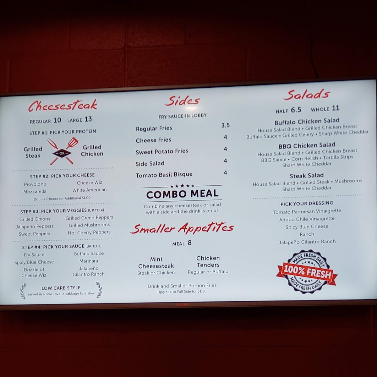 The menu features a customizable cheesesteak experience, letting you choose between grilled steak or chicken, a selection of cheeses like provolone and Mozzarella, and a range of fresh veggies including jalapenos and grilled mushrooms. Not to mention, a variety of irresistible sauces to take your sandwich to the next level.